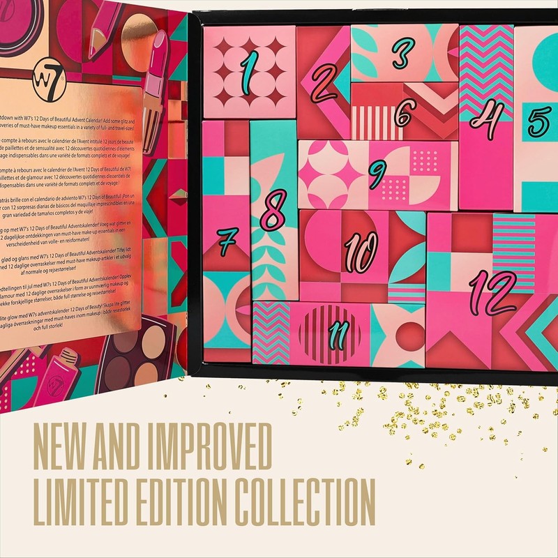 PERFECT GIFT: The "12 Days of Beautiful" is a limited-edition makeup gift, ideal for beauty lovers. This advent calendar features W7’s best-selling products in mini and full sizes, beautifully packaged in numbered boxes.