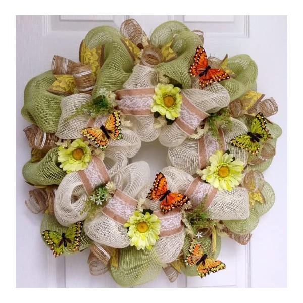 Beautiful Butterflies Lace and Burlap Deco Mesh Handmade Wreath 20 in or 28 inch