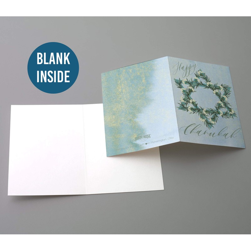 Beautiful Happy Hanukkah Greetings Cards - 24 Star of David Chanukah Cards w/White Envelopes - Watercolor Designs - Personalized Stationery Printed in the USA by RitzyRose