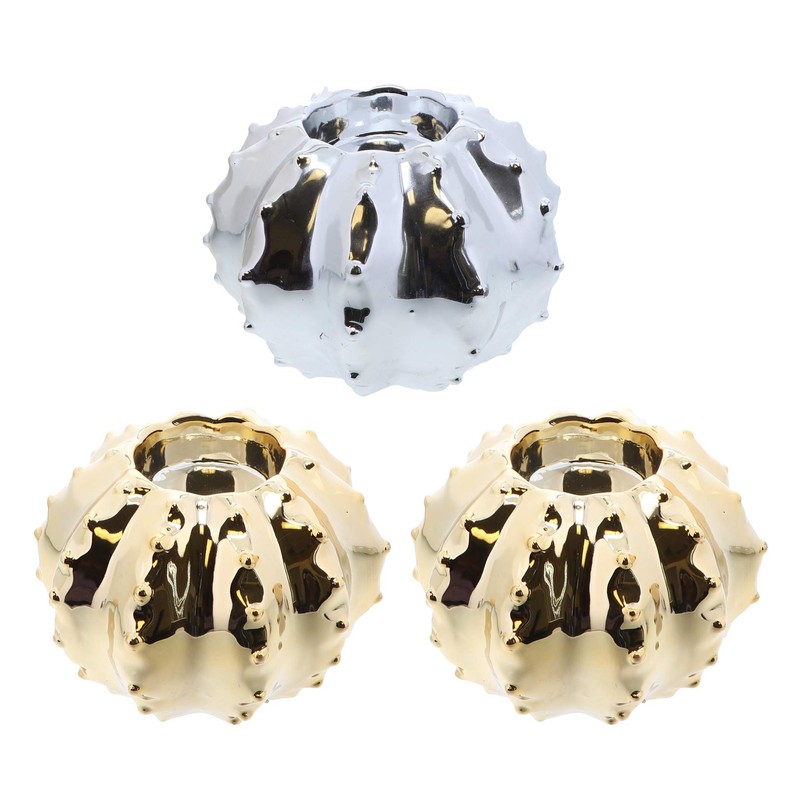 Beautiful Home Accent Round Cactus Tea Light Holder - Set of 3-2 Gold 1 Silver