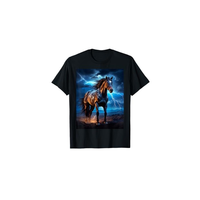 Beautiful Horse with Lightning Sky - Horse T-Shirt