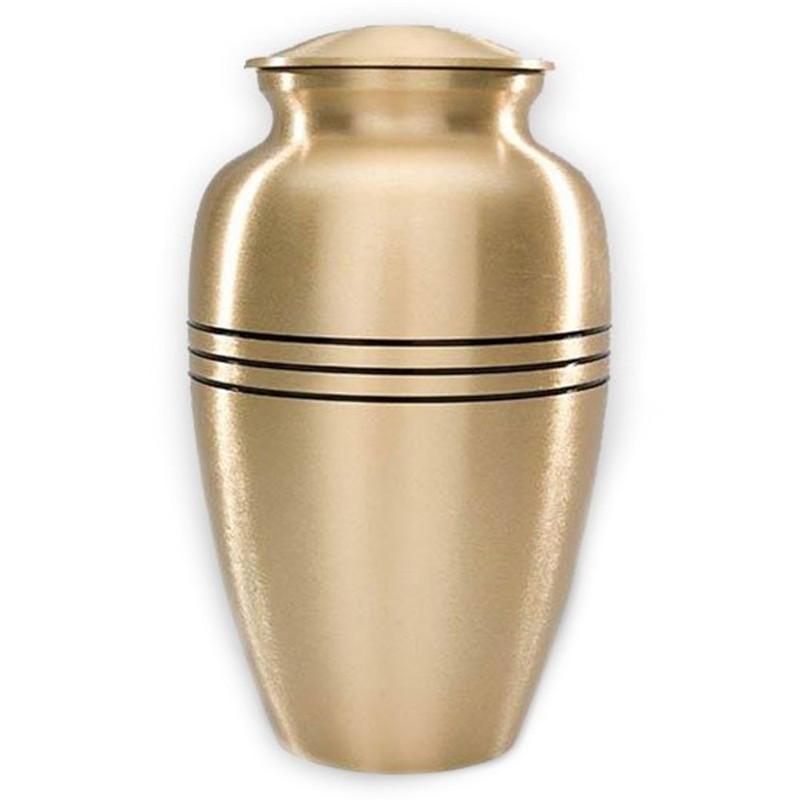 With a brushed gold finish and three elegant black lines circling the brass metal vessel, the Beautiful Life Urns Dignity Gold Large Cremation Urn is a distinctive and sophisticated way to honor your lost loved ones. For funeral proceedings and beyond, this ethically priced and exquisitely designed metal urn gives you peace of mind and a truly beautiful resting place for your loved ones.