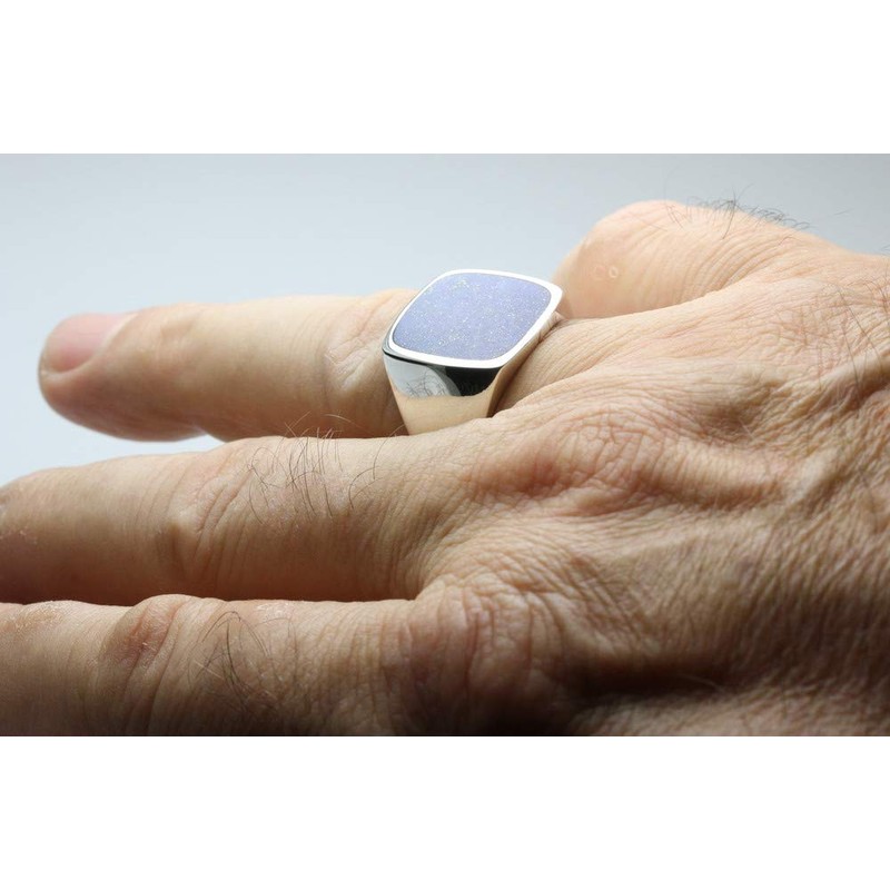 The blue lapis lazuli is interspersed with small pyrite inclusions that are characteristic of this interesting stone. The number of inclusions differs from lapis lazuli to lapis lazuli or from ring to ring.