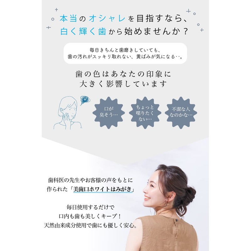 - Natural Whitening Toothpaste Formulated with hydroxyapatite for a pleasant experience of "smooth ingredients"