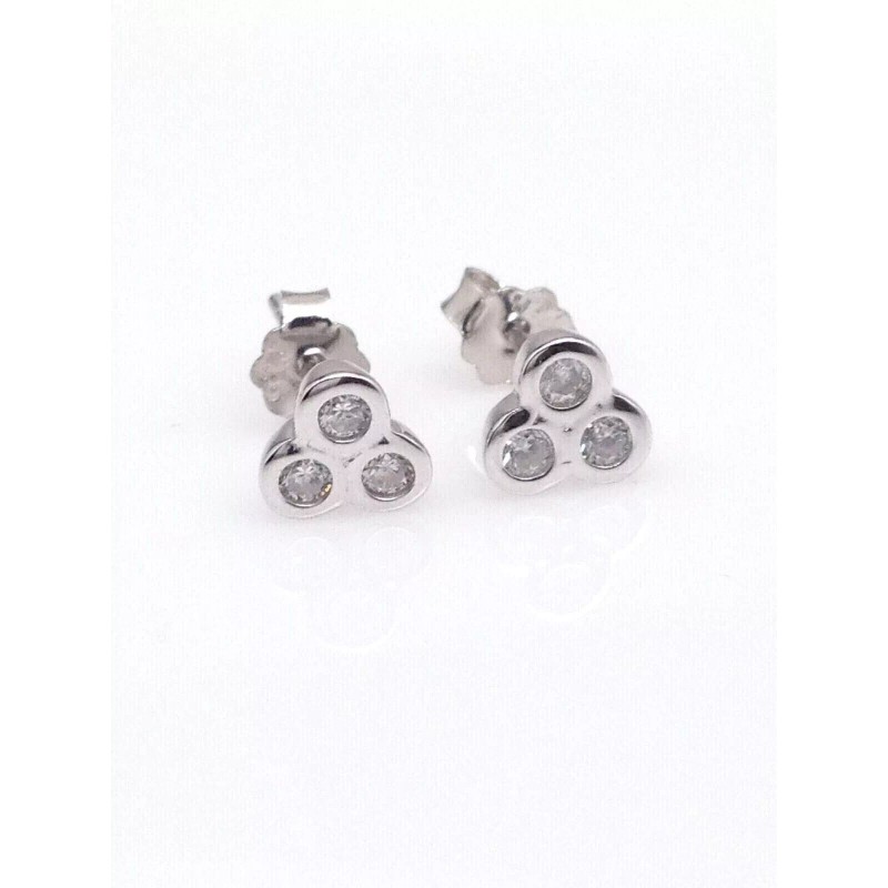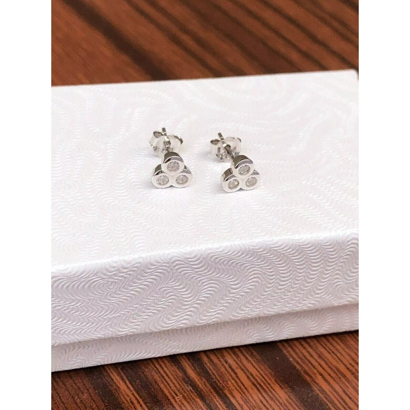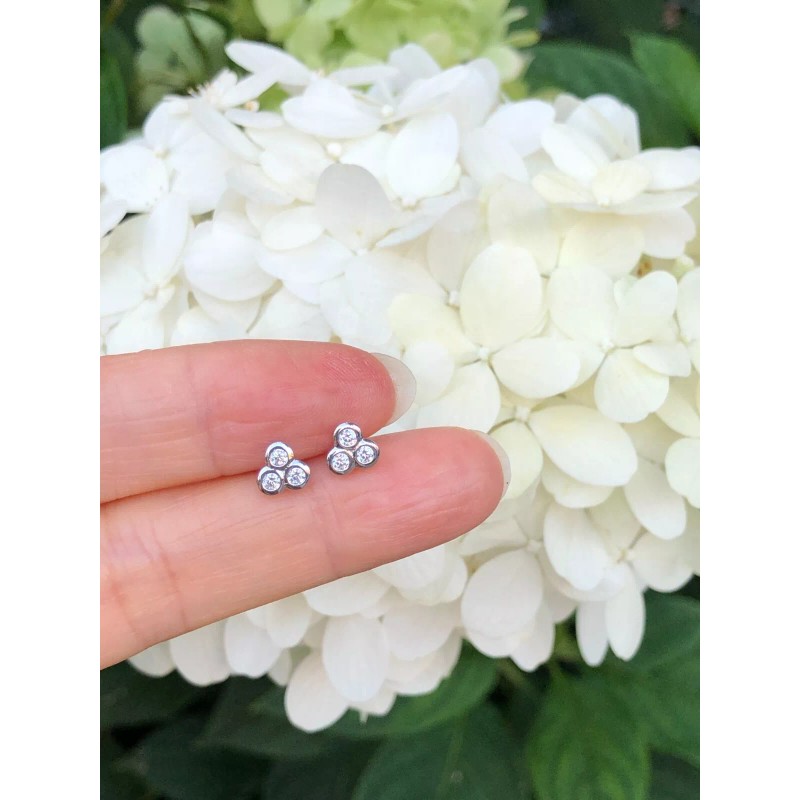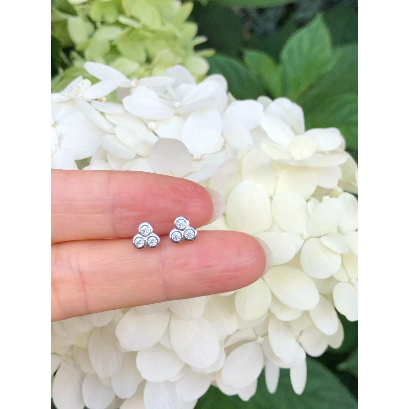 Beautifuljewelrynyc Tiny Bezel Cz Three Stone Stud Earrings 925 Sterling Silver Post Studs 5.5mm