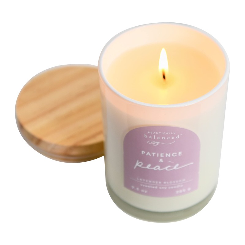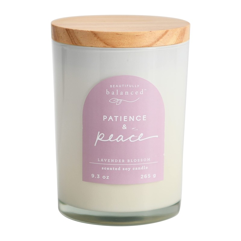 Beautifully Balanced Scented Lidded Glass Soy Candle, Patience + Peace 9.3 oz.
