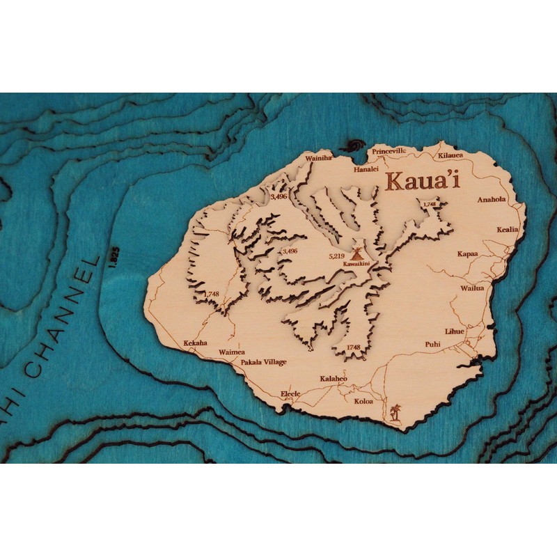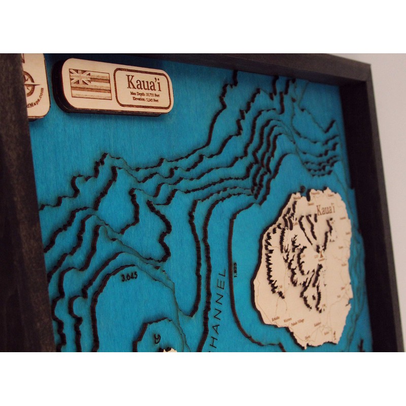 Beautifully Detailed! Kaua'i 3D Wood Map