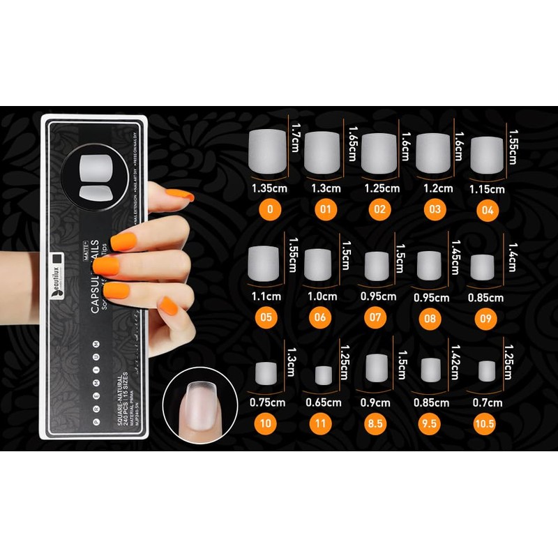 - Dünne und sehr stabile quadrat nail tips: Sie sind aus hochwertigem PMMA-Harz hergestellt und lassen sich nicht so leicht ablösen, dass Sie sich keine Sorgen machen müssen, dass sie brechen oder faltig werden. Die Farbe auftragen und die Maniküre genießen!
