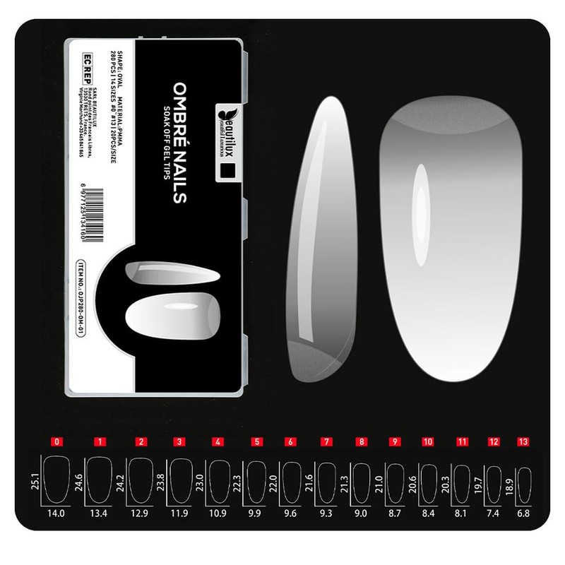 Beautilux Press On Nails Ombre White 280 Pcs 14 Sizes Oval Medium Press On Acrylic Nail Tips Soak Off Full Cover False Nail (OJP280-OM-01)