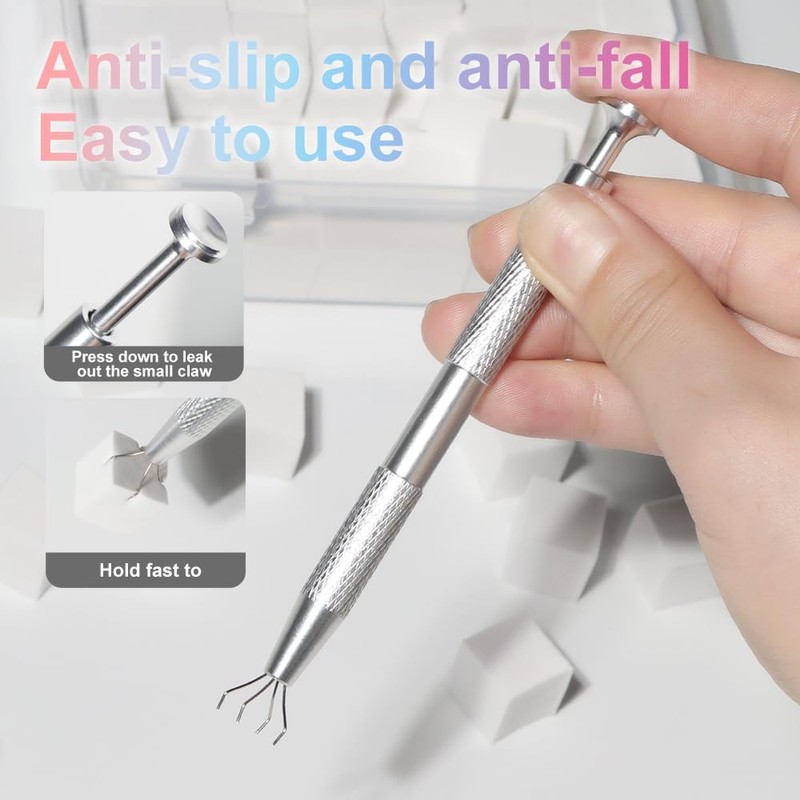 - Special sponge holder pen: Easy to use, can easily hold small objects such as nail rhinestones, nail sponges, adjustable force to adjust the grip reach and tightening. Perfect for gradient nail art with nail sponges!