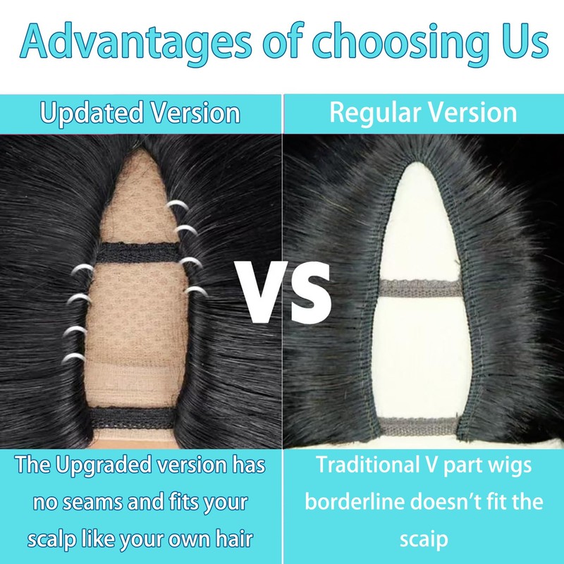 - 2.New Upgraded V part Wig :Upgrade from U Part Human Hair Wig,No Lace, No Gel, Minimal or No Leave Out and No Sewing.Easy To Install and Take Off, Saving Your Time & Protect Your Edge. Friendly to Beginner