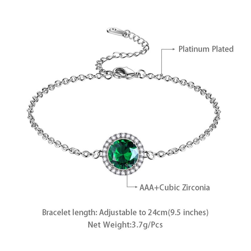 beautlace May Birthstone Bracelets Silver Plated Round Shape Charm Bracelet Green Birthstone Jewelry Birthday Gifts for Men and Women KB0017G