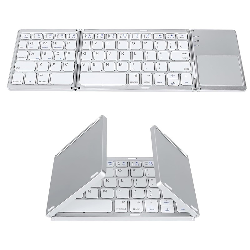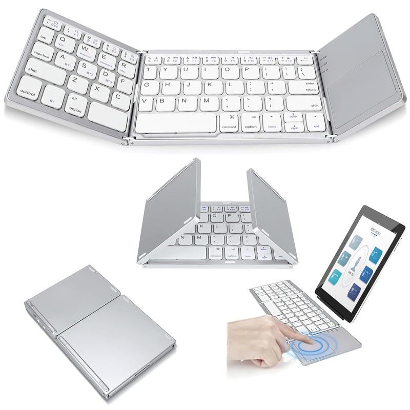 BEAUTY CHOICE Teclado Inalambrico Plegable,Teclado Bluetooth Portátil con Touchpad,Mini Teclados Ergonómico Silencioso y Recargable,Teclado Plegable Ultra Delgado para iOS,Windows y Android(Plateado)