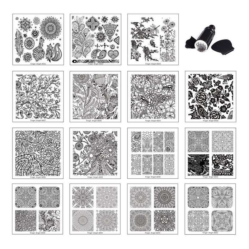 Beauty Leader 15 Pcs Stamping Nail Art Template Different Design Nail Art Stamping Plates 6 X 6 CM Nail Art Template 1 Pcs Double Side Nail Art Stamper with Scrape Kit Manicure Nail Art Image Tool