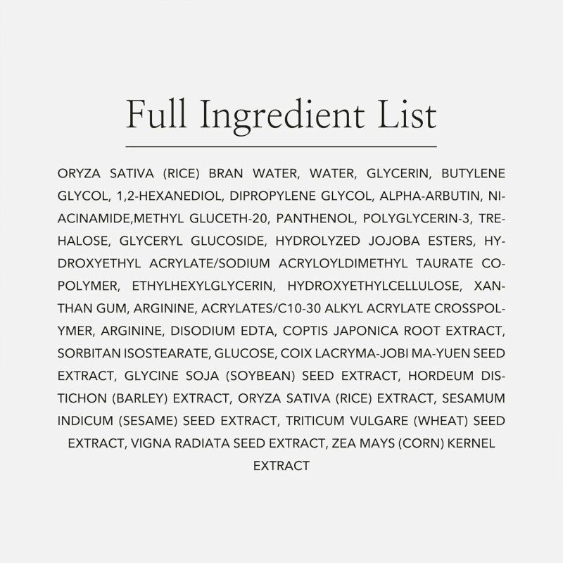 - Deep Hydration: Enriched with rice bran water to provide lasting moisture and improve skin’s suppleness.