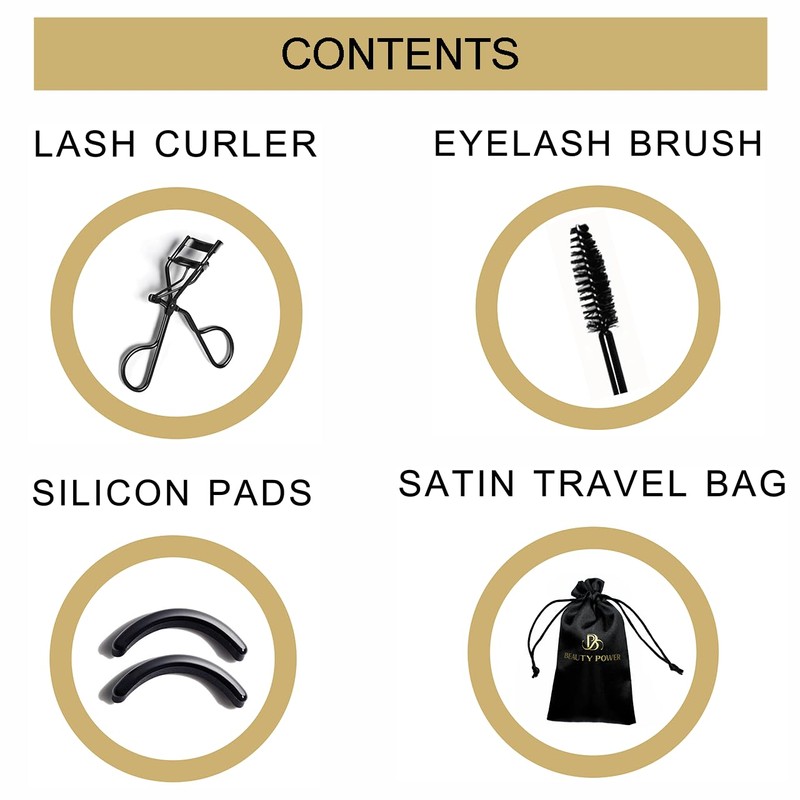 Beauty Power Eyelash Curler - Crimps & Curls Lashes for Perfect, Eye-Framing Fringe - Gentle & Safe - Includes 2 Replacement Pad - Brush for Eyebrows - Sating Travel Bag (Black)