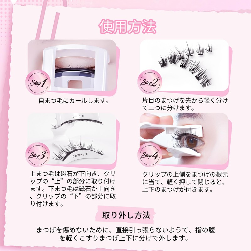 - (Can be used repeatedly) After using the magnetic eyelashes, gently remove and wipe off residual cosmetics and reuse. Enjoy the long lasting magnetic eyelash appearance. Enjoy the natural beauty and make you look attractive all day without sacrificing comfort