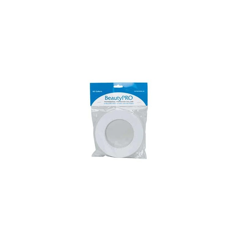 BeautyPRO Professional Protective Collars - 50 Pk are specially designed collars that prevent wax from seeping between the insert and the well of a wax heater, ensuring a clean and hygienic waxing experience.