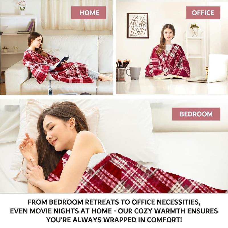 Beautyrest Reversible Faux Sherpa to Fleece Electric Wrap Poncho Blanket Shawl Wearable, Auto Shut Off, Virtually Zero EMF, Multi Heat Setting, UL Certified, Machine Washable, Red Plaid 50" x 64"