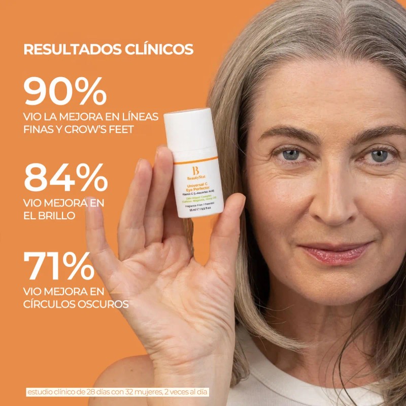 BeautyStat Universal C Eye Perfector Cream - Hidrata, reafirma y levanta con vitamina C, ácido hialurónico y extracto de té verde, libre de fragancia para reducir las ojeras y la hinchazón, seguro para pieles sensibles Suaviza e hidrata tu piel mientras disminuye la apariencia de líneas y arrugas. Los pies de los cuervos se han ido porque ahora tus ojos estarán refrescados por la textura aterciopelada y sin peso de este suero para los ojos. ¿Tarde en la noche. Alivia el enrojecimiento y la irritación inmediatamente mientras que reemplaza la necesidad de debajo del ocultador de ojos. ¿Cuántas de sus cremas y sueros para los ojos realmente hacen que se sienta más joven y más vibrante con cada aplicación. El nuestro lo hace.