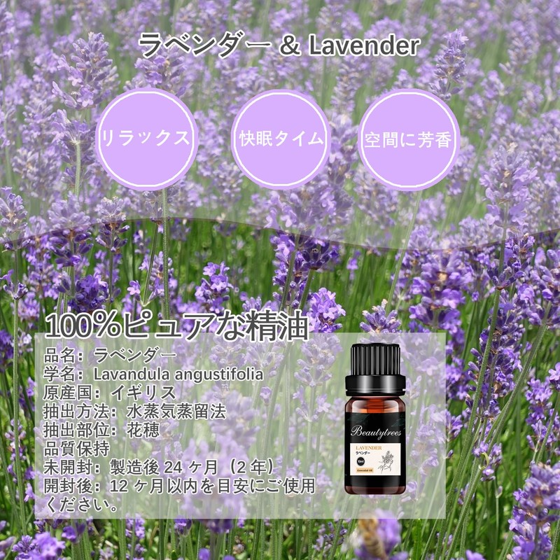 - Note: Ingredients: 100% natural pure lavender essential oil. Due to the air and space, the container used, the user's sensibility and preferences and physical condition, there may be slight variations in the scent in different conditions. Pay attention to the air when using it, and feeling the change of the fragrance, increase or decrease the amount of use according to the actual circumstances and enjoy your time