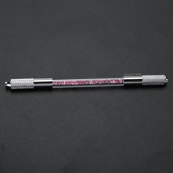 BeautyU&Me 1pc Double Crystal Acrylic Manual Tattoo Pen Permanent Microblading Eyebrow Tools (pink)