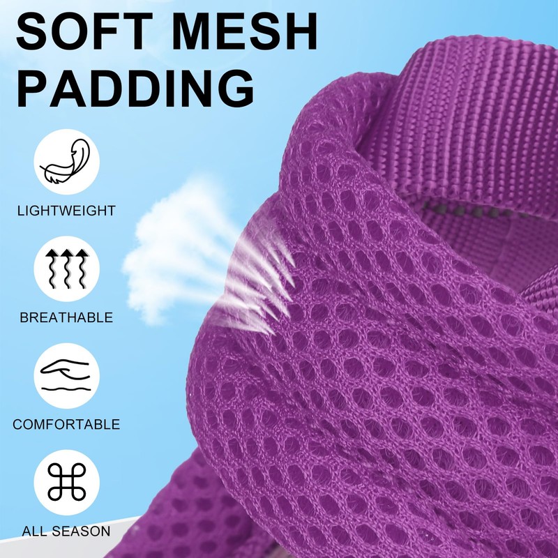 - Soft & Easy On: There are soft mesh pads beneath the straps on the dog's neck and back, and the pads are wider than the straps to ensure that the dog feels comfortable even when pulling. The quick release buckle design makes it easy to put on or take off the harness. Additionally, the adjustable bust strap allows for a customized fit