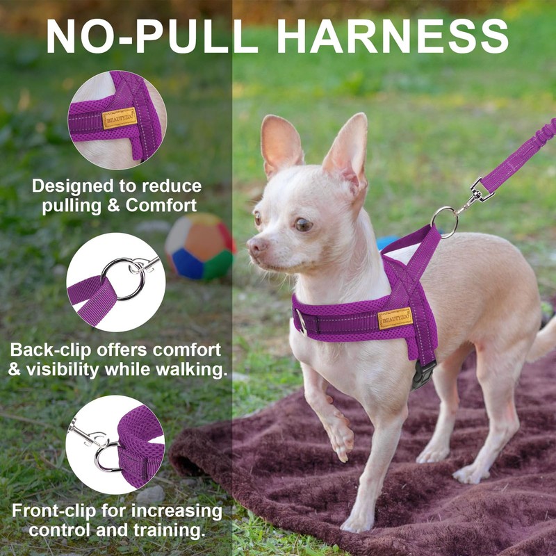BEAUTYZOO Dog Harness for Small Dogs, No Pull Dog Harness and Leash Set, Soft Escape Proof Puppy Vest Harness with Handle, Reflective Lightweight Step in Harness for Girl Boy Dogs, Purple M