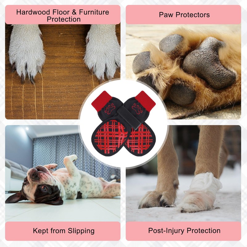 - Multi-Functional: Dog socks with grips are the perfect solution for slippery hardwood floors, hot pavement, floor protection, and dog paw licking prevention. In addition to giving better traction to your dog and keep the dog's feet warm and comfortable in winter, dog socks can protect your furniture such as hardwood floors, wooden tables, sofas, etc. from being scratched by your dog's sharp claws.