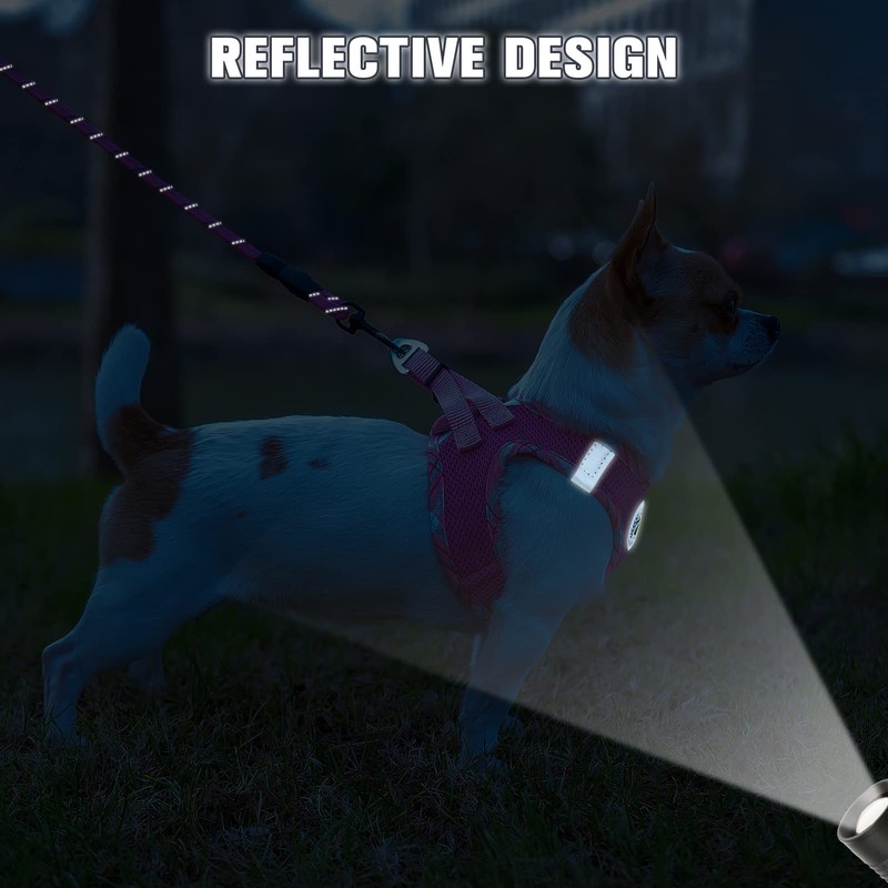- Professional design: No pull and no choke.The puppy dog harness has a raised design at the front of the chest and is recessed at the bottom edge for a more comfortable fit. With reflective strips on the pet harness and leash, you can take your puppies out at night without worrying about not being able to find them, making them safer in the dark.