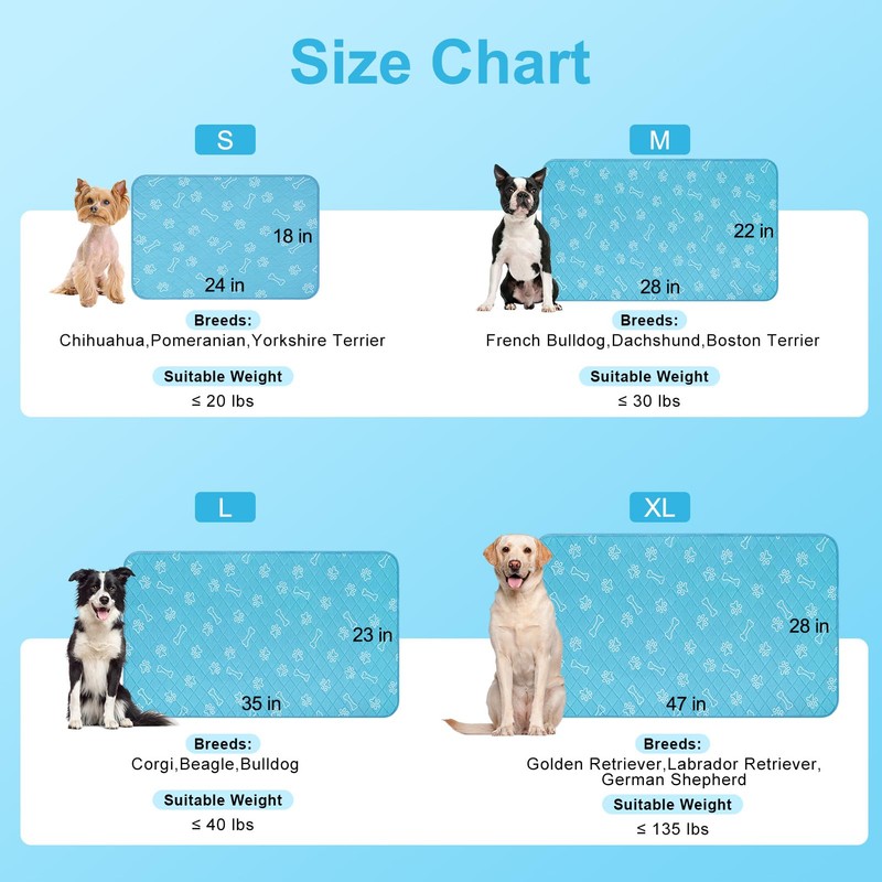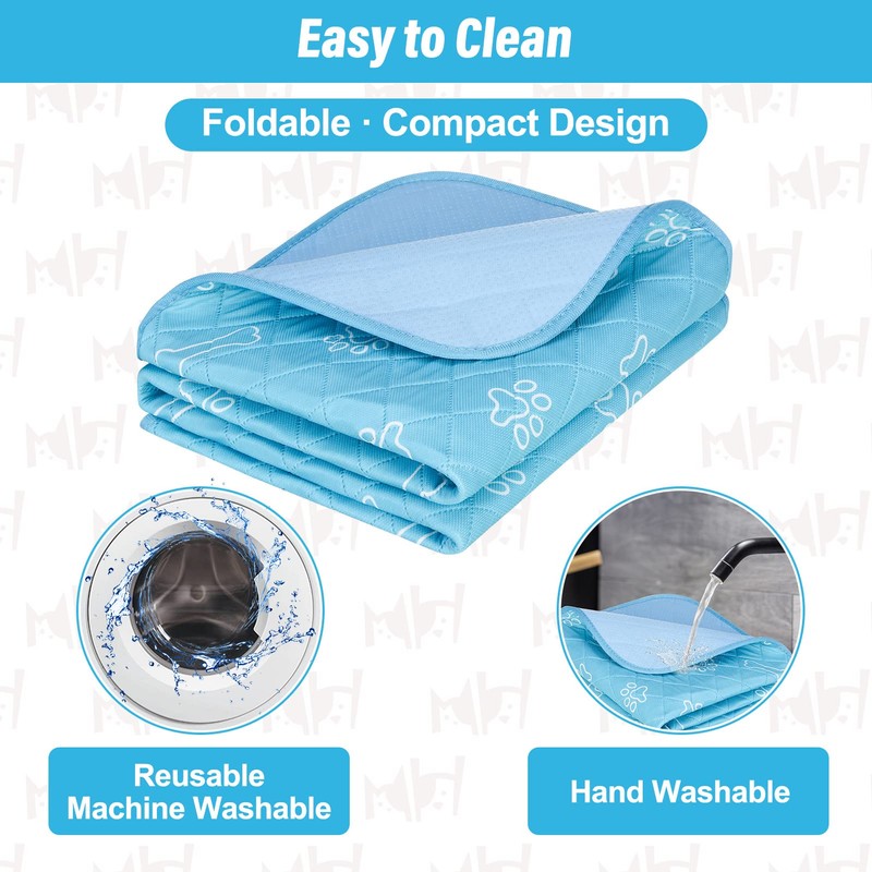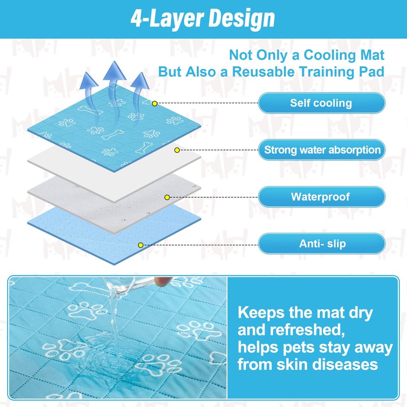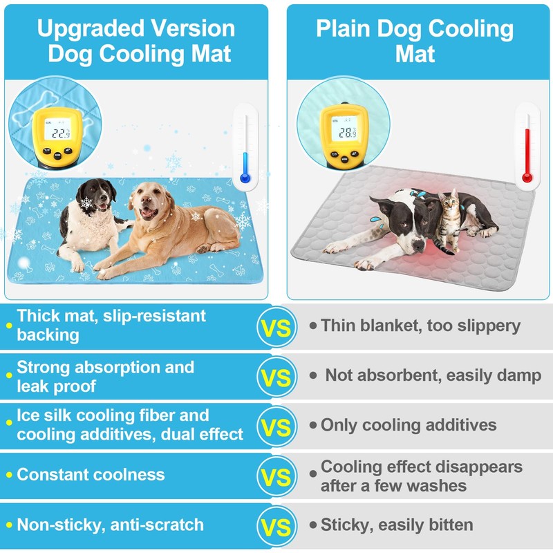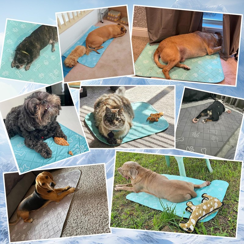 - Elaborate Design-- The inner layer of the mat had water absorption material to stay dry, urine and odor control. Besides, our summer dog sleeping pad is extremely breathable. Excellent craftsmanship can ensure self-cooling pet mat is durable enough and chew proof. It's also could be used as a pet pee pad or feeding mat.