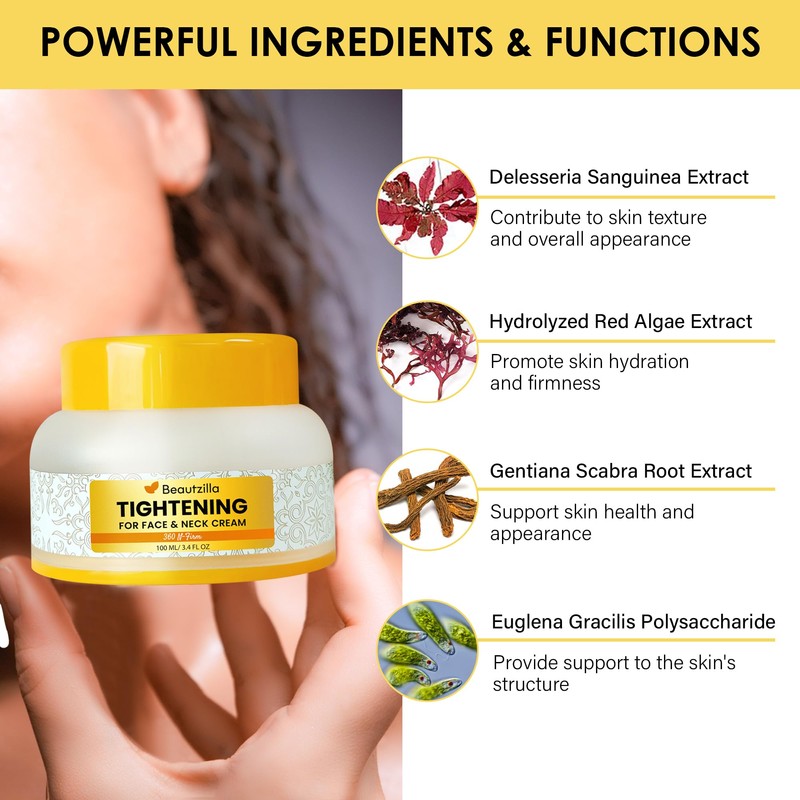 Beautzilla Neck Tightening Cream, Neck Creams for Tightening and Firming, Neck Firming Cream For Women, Face Firming Cream Help for Sagging Skin, Fine lines, Décolleté with Collagen Peptides,3.4 FL OZ