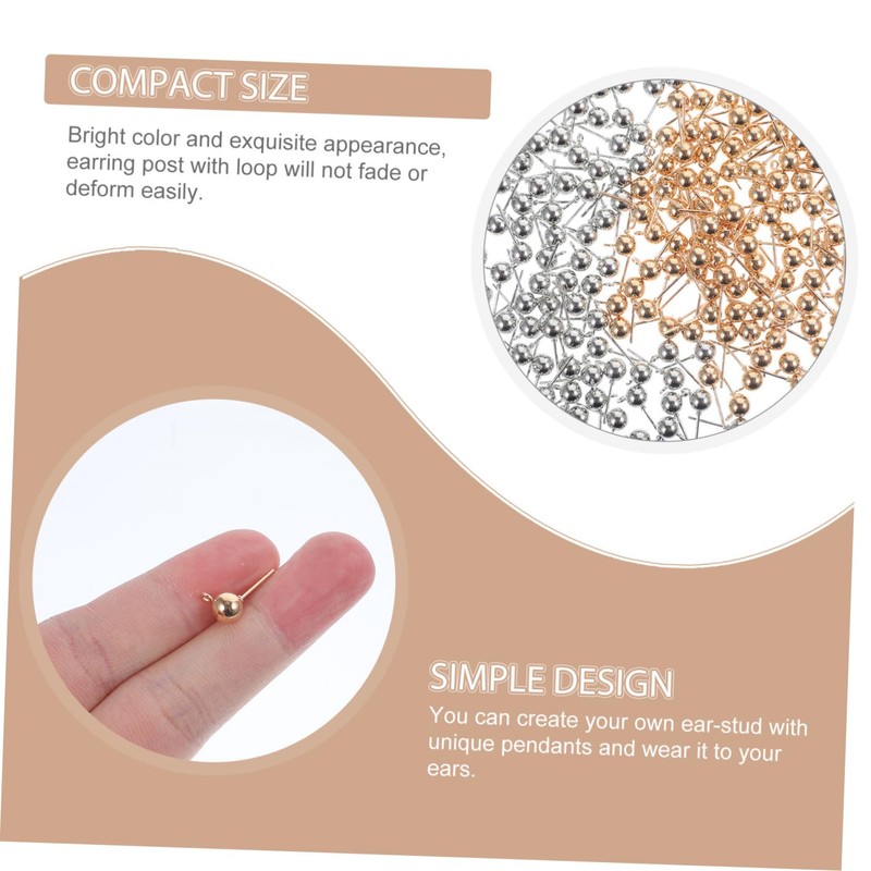 Beavorty 200Pcs DIY Earring Supply Ball Earring Findings with Loop Smooth Sur...