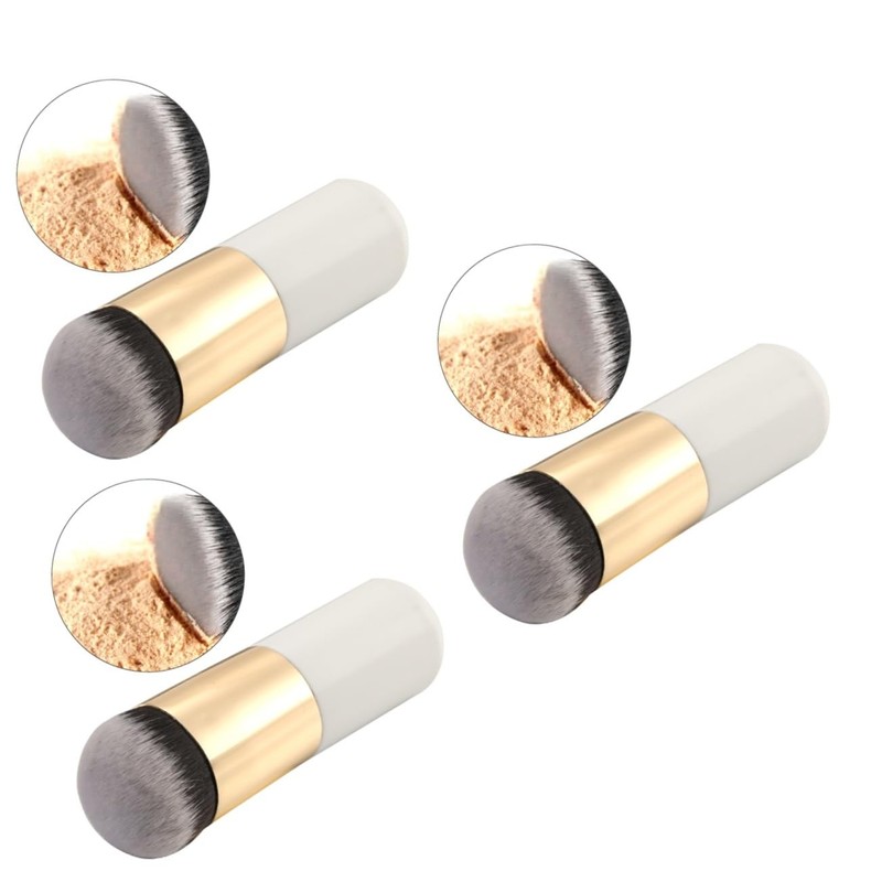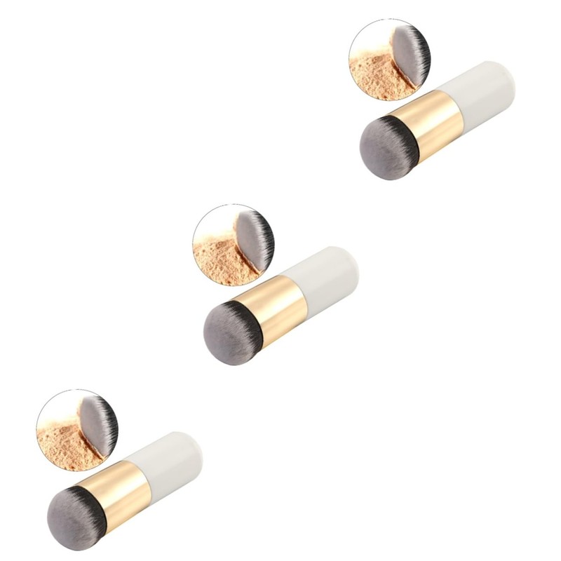 3 x Flat Liquid Foundation Brush Face Blush Makeup Cosmeic Powder BB Cream Make up Beauty Tools (Gold & White)