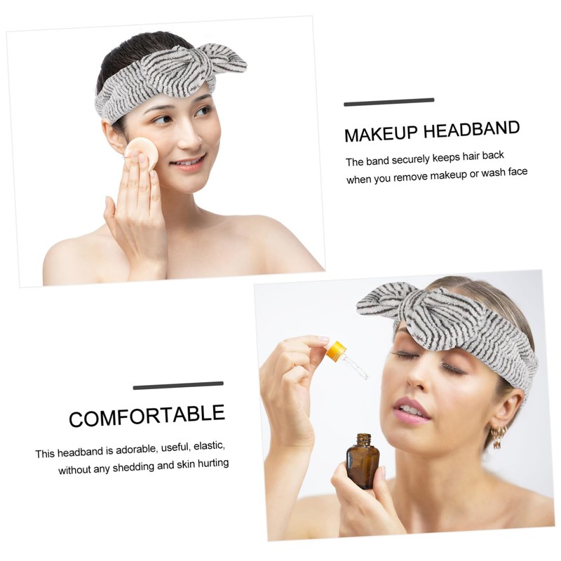 Beavorty 3pcs Makeup Headband Bowknot Design Striped Hair Band for Face Washing Comfortable and for Skincare Routine