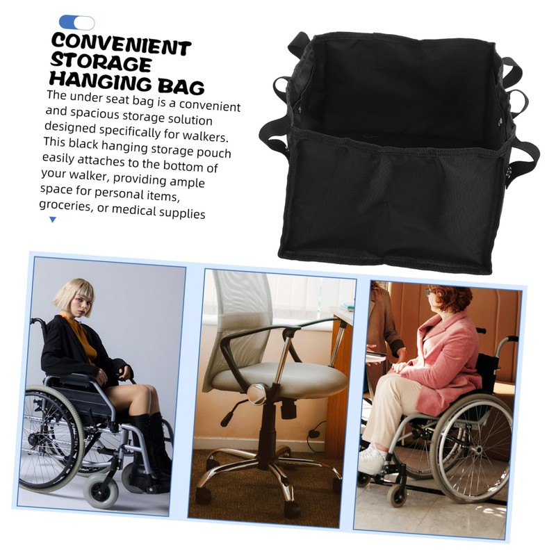 walker baskets The under seat bag is a convenient and spacious storage designed specifically for walkers.foldable walker storage bag Its durable fabric ensures use, making it an essential accessory for anyone using a walker.walkers pouch side pocket This black hanging storage pouch easily to the bottom of your walker, providing ample space for personal items, groceries, or medical supplies.wheelchair basket The bag's design allows for easy access to your belongings while on the go, ensuring you have everything you need within reach