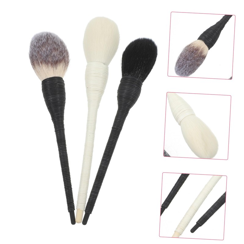 Beavorty Makeup Brush Set 3pcs Wool Rattan Makeup Brushes Perfect for Travel Gentle on Skin