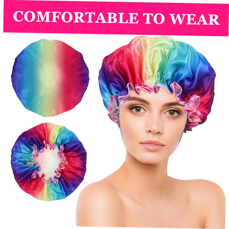 Hair Cover The shower hat is sturdy, lightweight and easy to carry, can be used for a variety of activities.Hair Shower Cap Welcome our shower cap! Our shower cap is not only practical but also fashionable.Shower Cap For Braids The rainbow-colored design is eye-catching and trendy, making it a great addition to your bathroom accessories