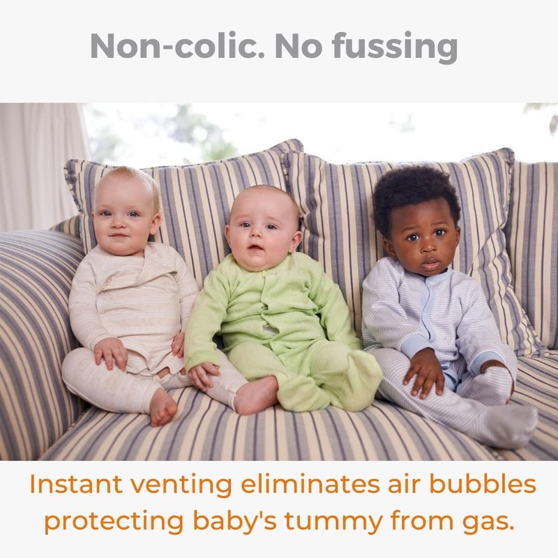 - NO MORE GAS AND COLIC: Our patented nipple vent eliminates air bubbles, reducing gassiness and colic without any complex assembly required.