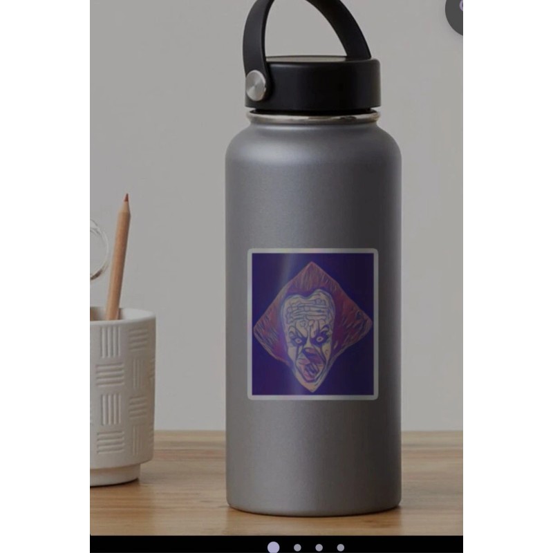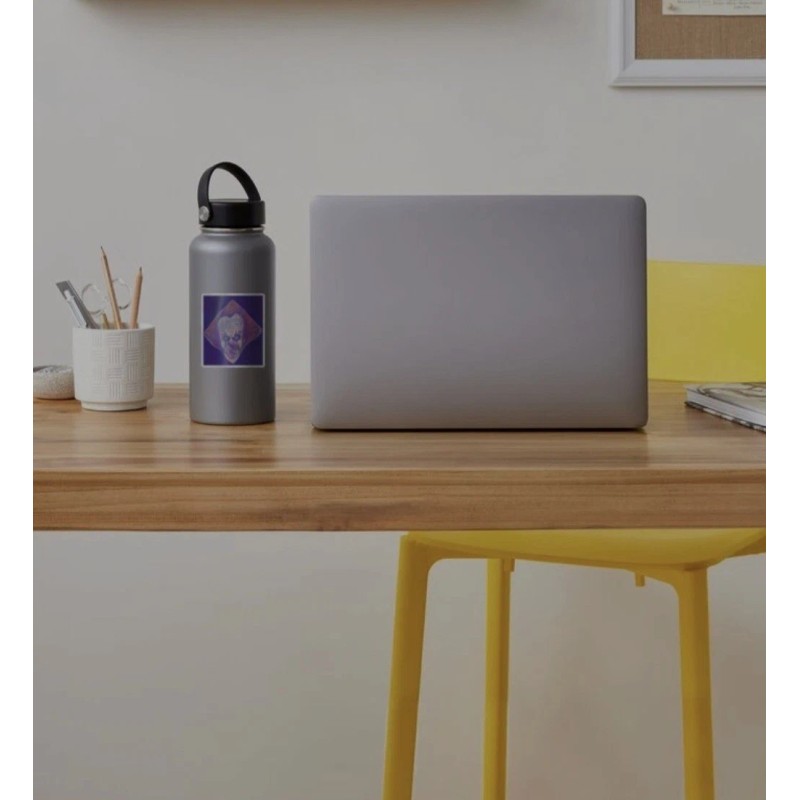 The product is a small holographic Pennywise sticker featuring the iconic character from the horror film "IT." Made of vinyl material, this multicolor sticker is suitable for various surfaces such as windows, walls, cars, bins, kitchen appliances, refrigerators, furniture, doors, and cups. With a gothic style and featuring a 3D effect, this decorative sticker adds a creepy and unique touch to any room. Designed by BeBeStrange, this Pennywise sticker is perfect for fans of horror, clowns, and popular characters, offering a smooth and removable option for adding a touch of art and terror to your living space.