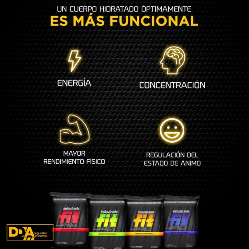 Industrade Fit es una bebida en polvo diseñada para reponer electrolitos y mantener una hidratación óptima durante actividades físicas o en climas cálidos: