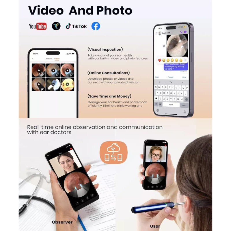 - Features: High-Precision, Painless, Portable, Reusable, Otoscope Camera
