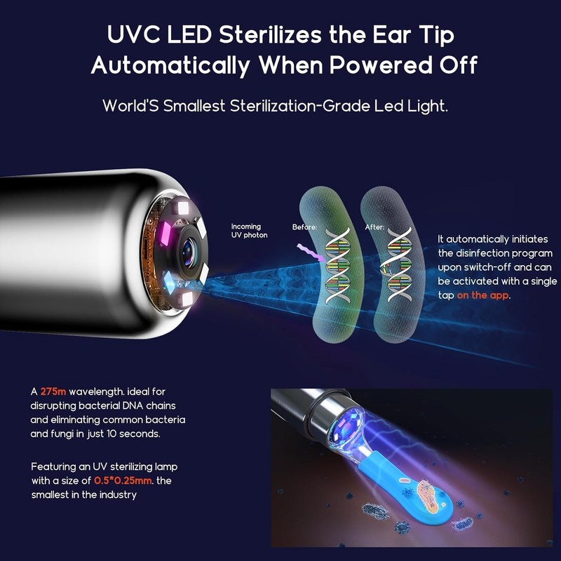 Bebird Home 30S Ear Wax Removal, Smart Ear Care System Cleaner Kit, Wireless Scope Silicone Flex Earscope Camera, UVC LED Light, Visual Wax Cleaning Dropper, Wax Removal Tweezer Tool Adult/Kids