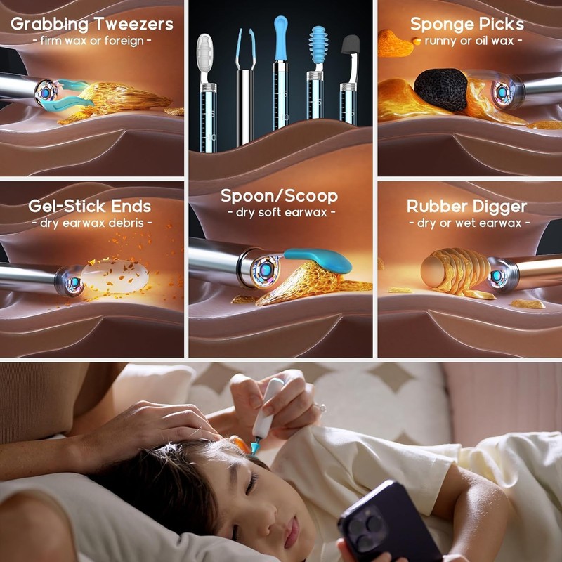- GAME-CHANGING EAR TWEEZERS: When wax builds up over time, regular ear spoons often fall short in effectively removing it. However, these mini ear tweezers make deep wax removal easy. They’re also invaluable when children insert foreign objects into their ears, and the built-in camera ensures precise removal. Many elderly users have reported that after using these tweezers to clear stubborn ear canal wax, their hearing improved significantly, reducing the need for frequent hospital visits.