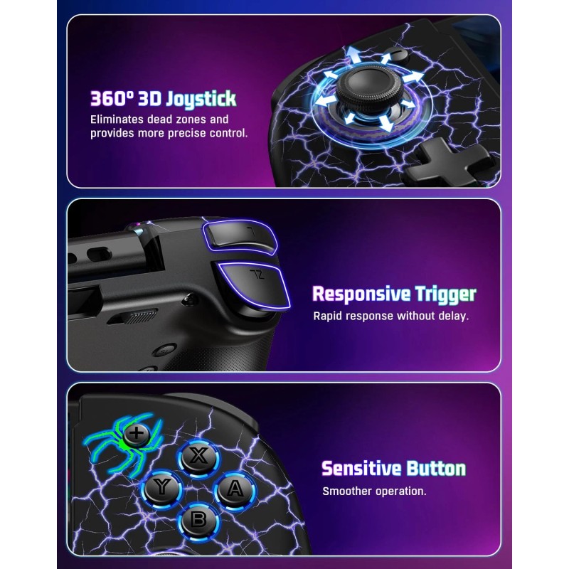 Hall Sense Joystick Controller: This Switch controller comes with Hall Sense Joystick, the innovative electromagnetic induction technology allows your controller to never drift, you can precisely control your character in intense games, greatly extending the life of the controller
