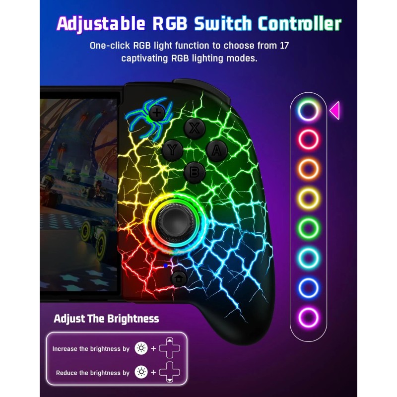 17 Lighting Effects & 1000mAh Battery: This Switch controllers features 4 lighting modes: RGB, Flash, Breathing, and Cyclic Breathing, as well as 8 lighting colors and 19 lighting effects. You can select the background lighting of the switch controller based on your personal preference. The switch pro controller includes a high-capacity 1000mAh battery, which is twice the capacity of a regular Joy-C*n. It provides up to 10 hours of gameplay in light mode