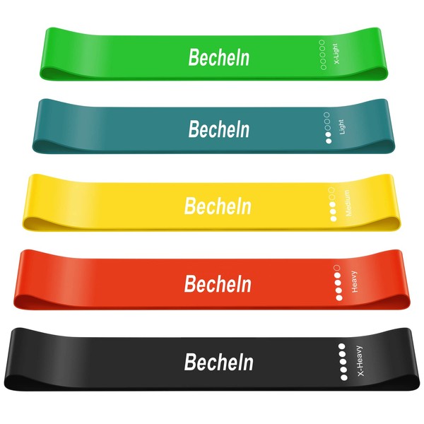 Becheln Resistance Band, Exercise elastic Bands for Yoga, Pilates, Fitness and Working Out, Set of 5 Stretch Bands with Carrying Bag