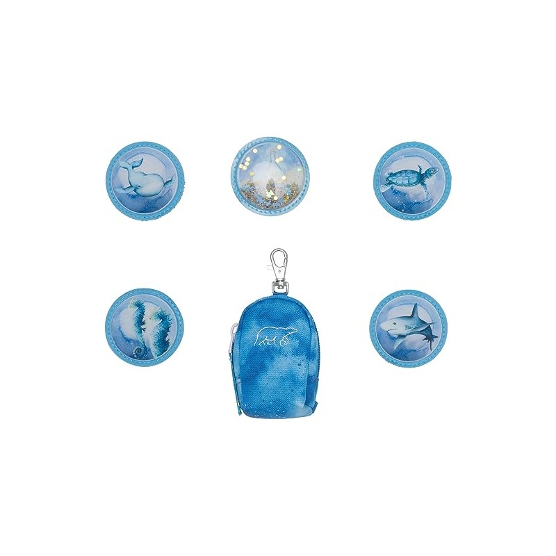 Five buttons with exciting, child-friendly motifs. They come in a separate mini backpack in which a cuddly toy, a superhero or a doll can also be stored. The buttons are easily attached with Velcro fastener and are therefore easy to replace. The buttons can be stored in the mini backpack and can be attached to the classic, classic maxi and active air FLX primary school backpacks as well as to the oval pencil case and to the A4 collection folders from Beckmann