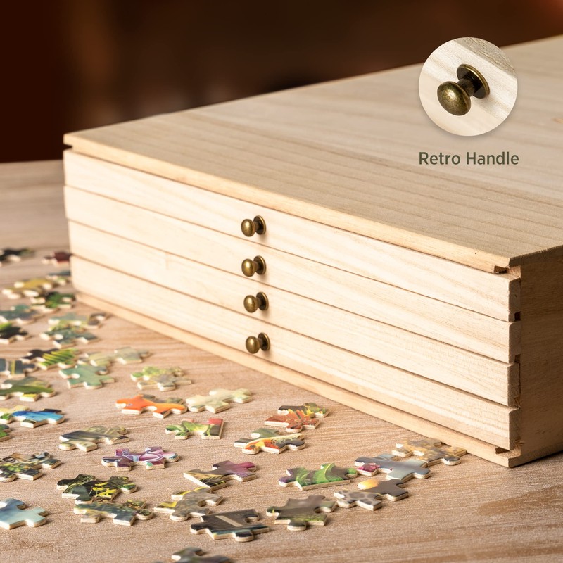 When using the Becko Piece Box, you can pull out them and push them back in the box when not in use to avoid dust and pets. Such a design makes it easier to sort, store and move the puzzle pieces to other locations quickly and safely.