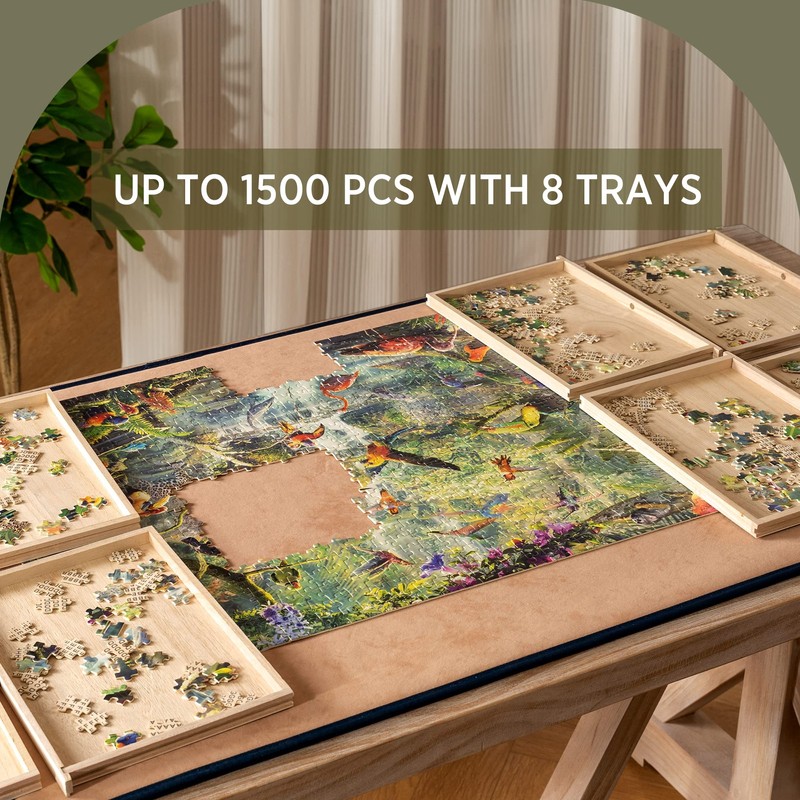 Becko puzzle trays are made of 100% high quality paulownia, sturdy and durable for easy storage. Feature 8 pieces in the size of 10.55 × 7.36 in, while the drawer design allows you to sort the puzzle pieces by color, shape or pattern in the 8 trays for higher game efficiency, making puzzles easier and funnier.